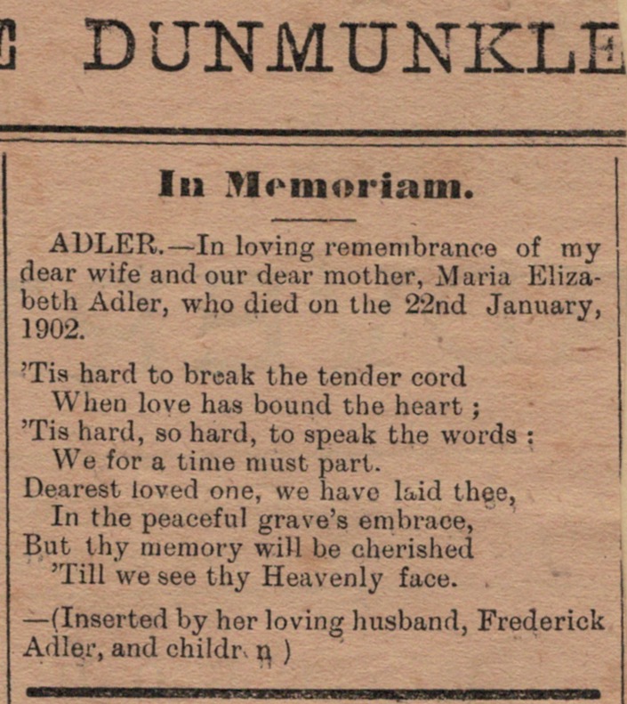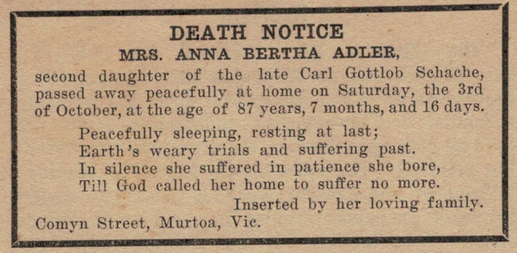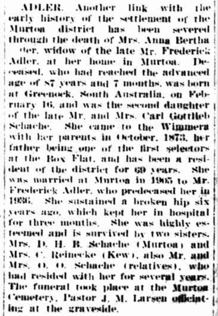 “Dunmunkle Standard and Murtoa Advertiser”(Vic.), Friday 23 January 1903, page 2 [Tess Hausler (Schache)]