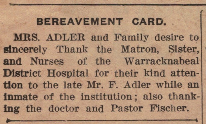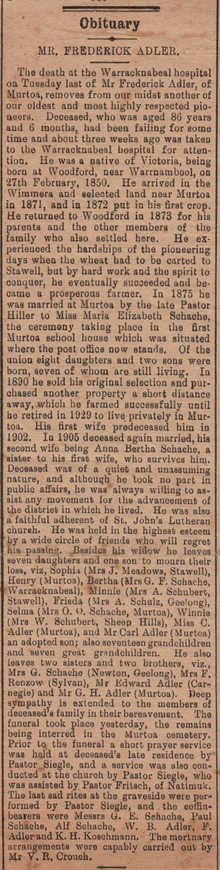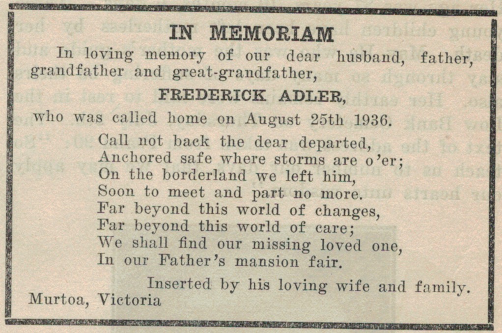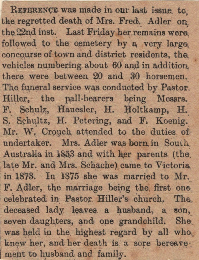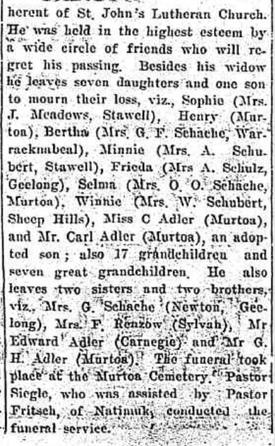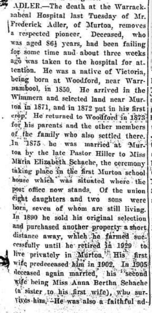 “Horsham Times” (Vic.), Friday 31 January 1902, page 4 (extract from “Obituary”) [Trove].