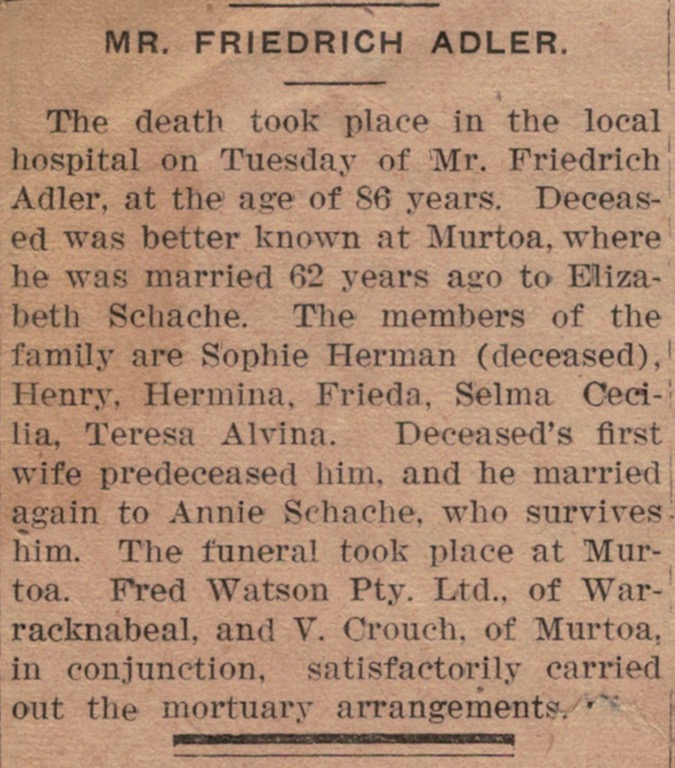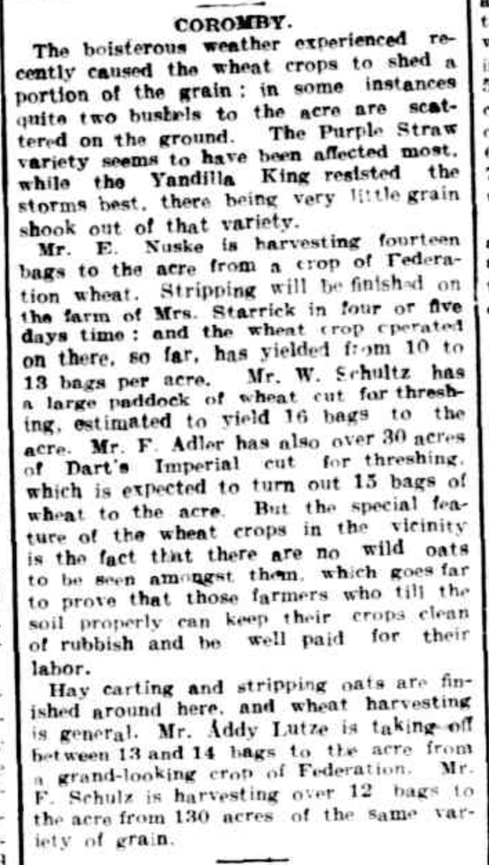 “Dunmunkle Standard and Murtoa Advertiser” (Vic.), probably Friday 31 January 1902, page 2 [Tess Hausler (Schache)].