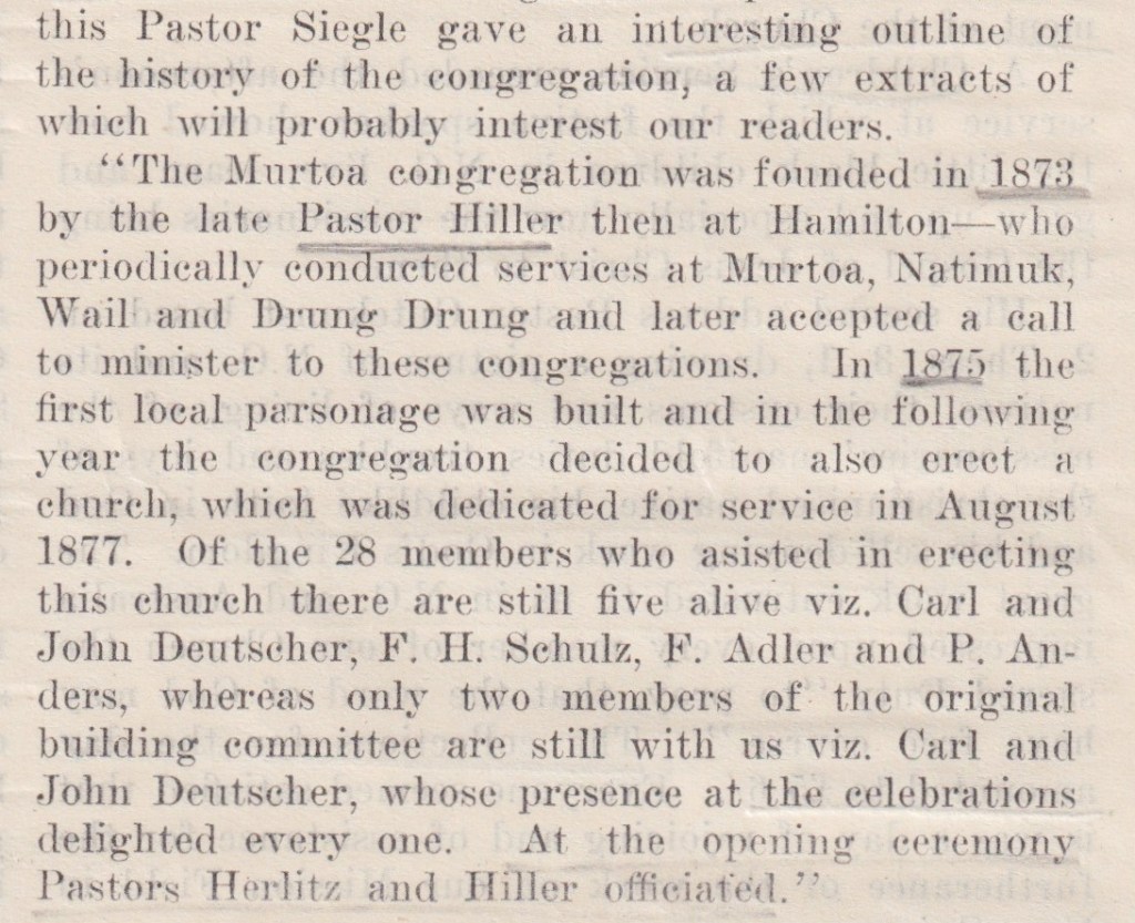 “Lutheran Herald” (Tanunda, SA), 7 November 1927, page 362 (extract from item “Church Jubilee”, St. John’s Lutheran Church, Murtoa, 50th anniversary of the building).