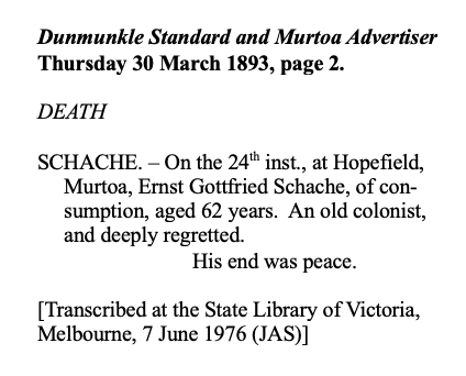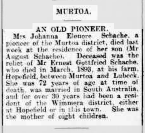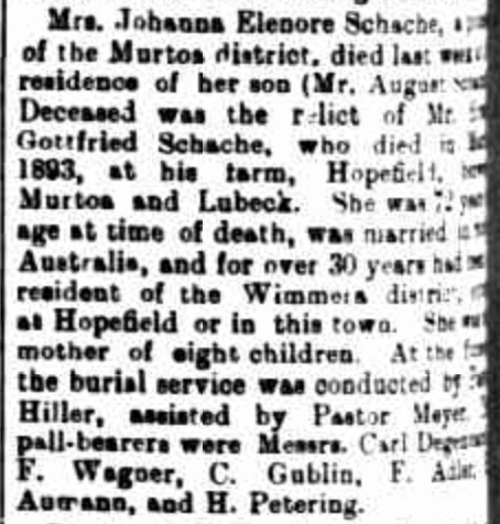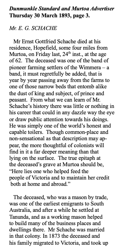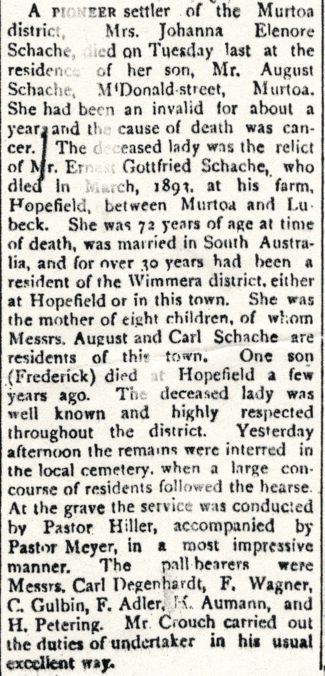 “Horsham Times” (Vic.), Tuesday 9 February 1904 page 2 (extract from article “Obituary”) [Trove].