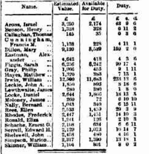 “Argus” (Melbourne, Vic.), Friday 16 June 1893, page 3 (extract from article “Probates and Letters of Administration”) [Trove].