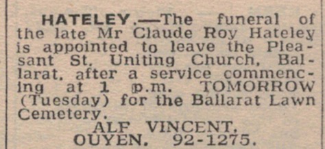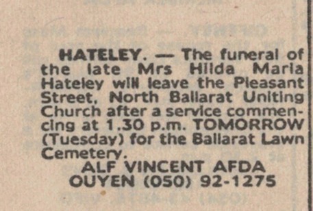 “Sun” (Melbourne, Vic.), Monday 19 March 1979, page 55 (“Funerals”).