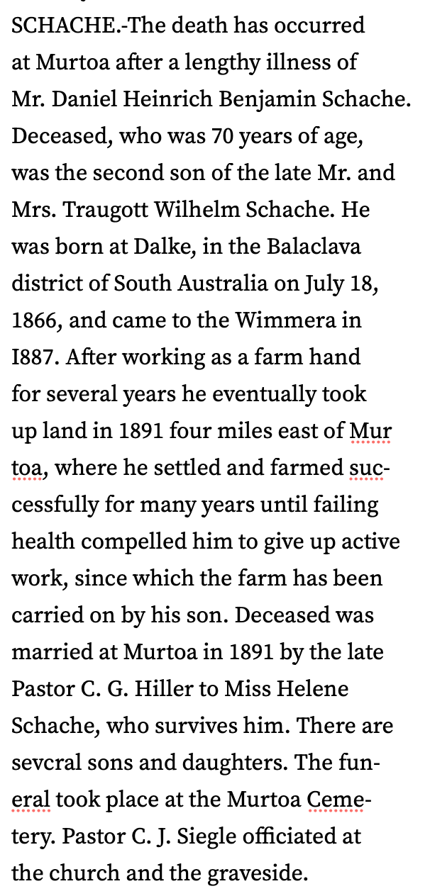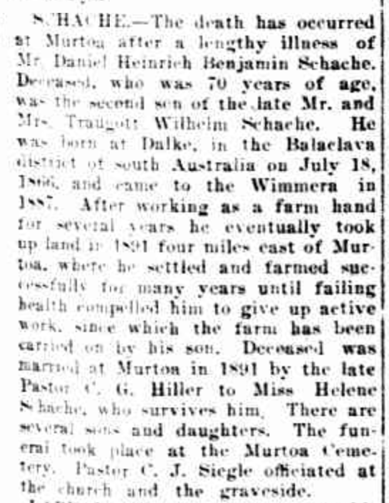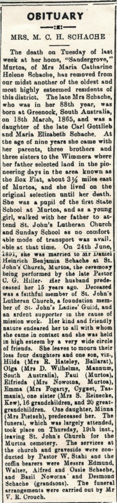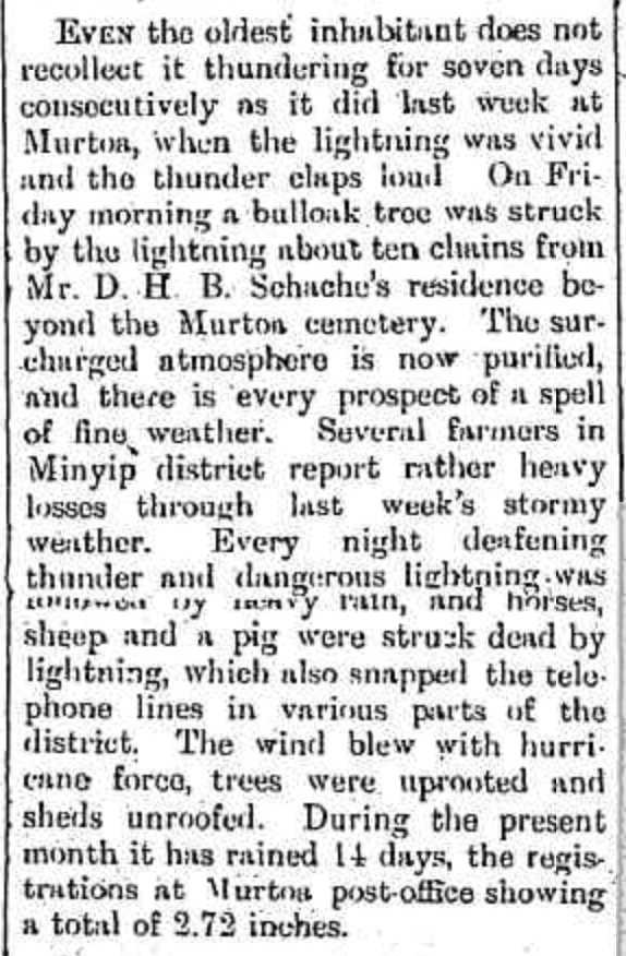 “Ouyen Mail” (Vic.), Friday 2 March 1934, page 1 (extract from article”Turning Back the Pages of District Papers”/ extract from “Warracknabeal Herald” February 5 1909 [Trove].
