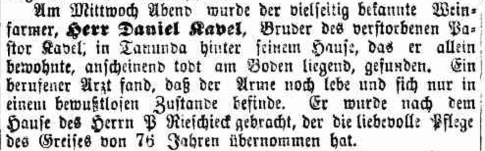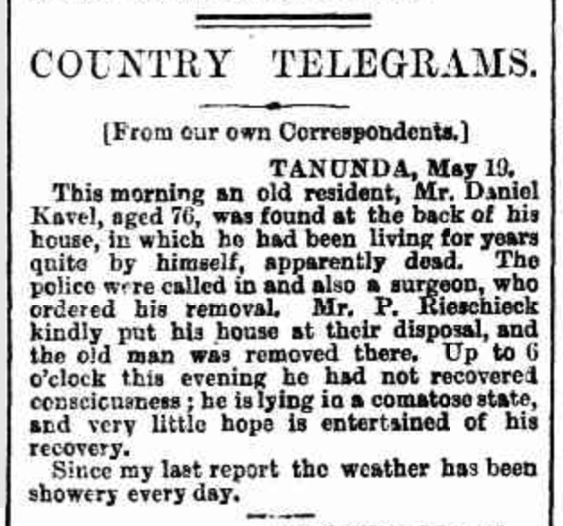 “Express and Telegraph” (Adelaide, SA), Tuesday 20 May 1884, page 3; also published in “South Australian Advertiser” (Adelaide, SA), same date, page 6; and “South Australian Weekly Chronicle” (Adelaide, SA), Saturday 24 May 1884, page 11 [Trove].