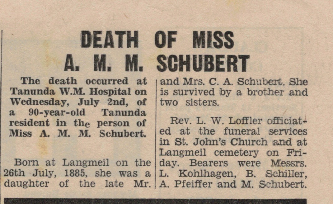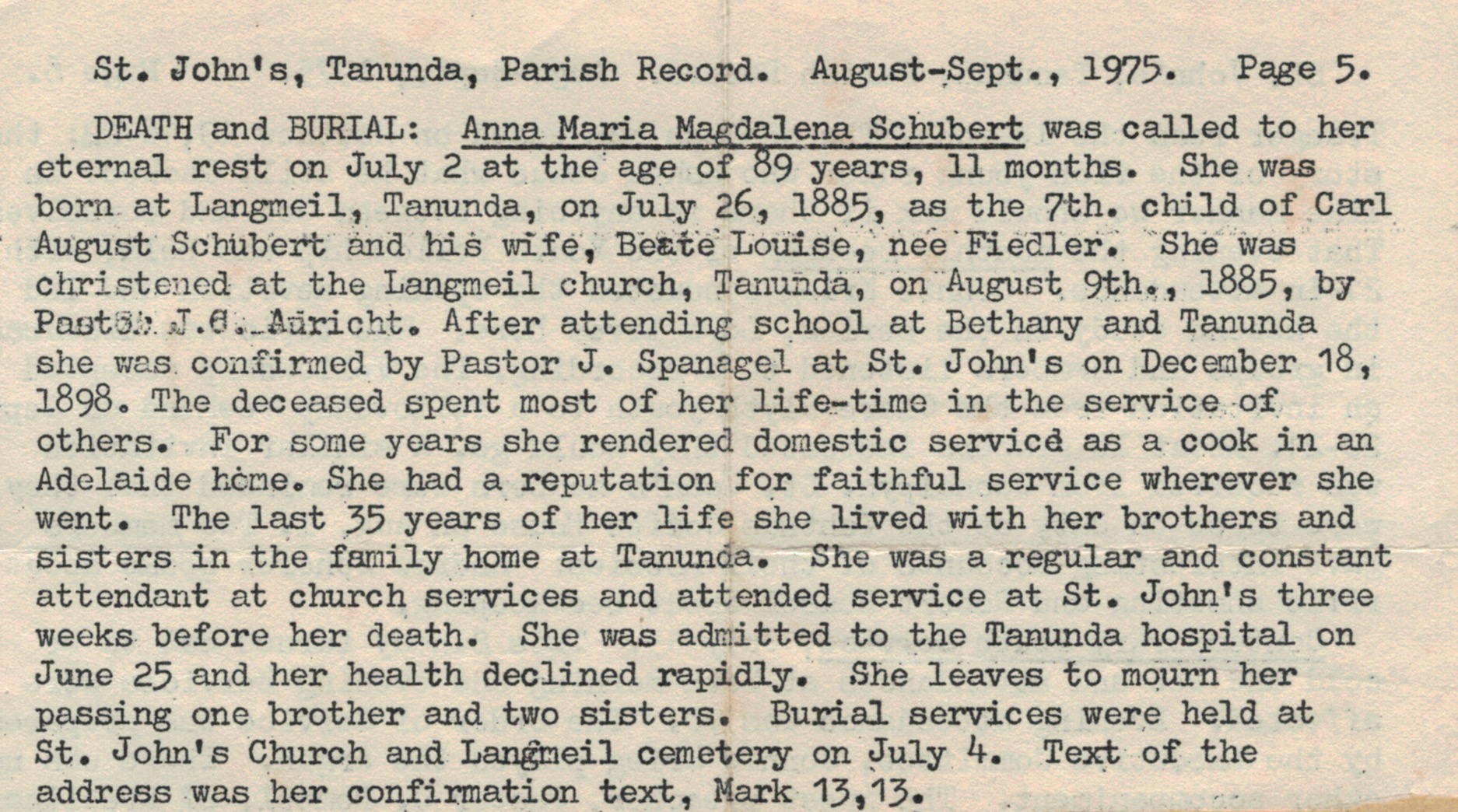 Press References 1.8.7 SCHUBERT “Barossa and Light Herald” (Tanunda, SA), July 1975 [Hilda Schubert]. Advertiser (Adelaide, SA), July 1975 [Hilda Schubert]. “Parish Record” (St. John’s Lutheran Church, Tanunda, SA), August-September 1975, page 5 [Hilda Schubert].