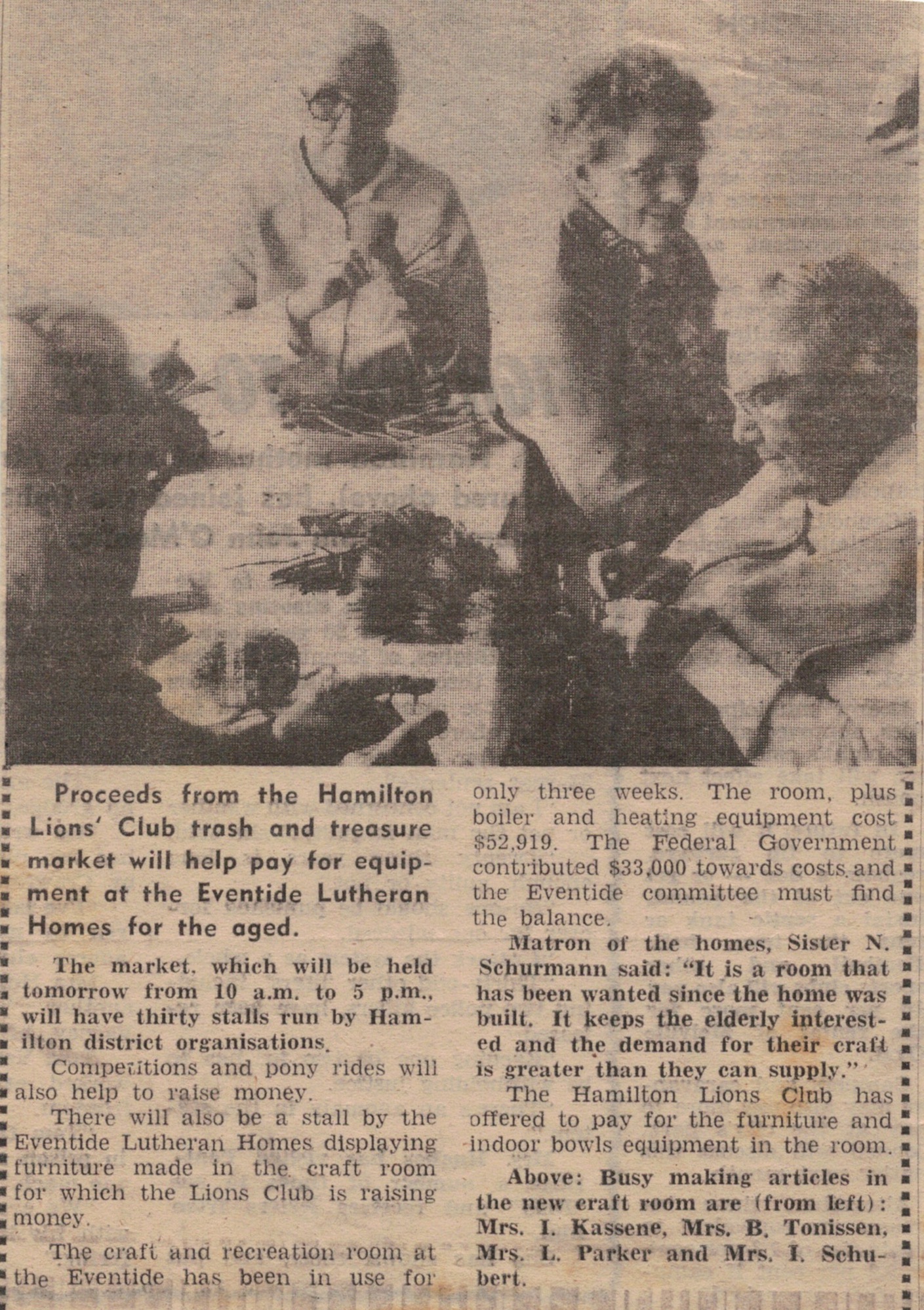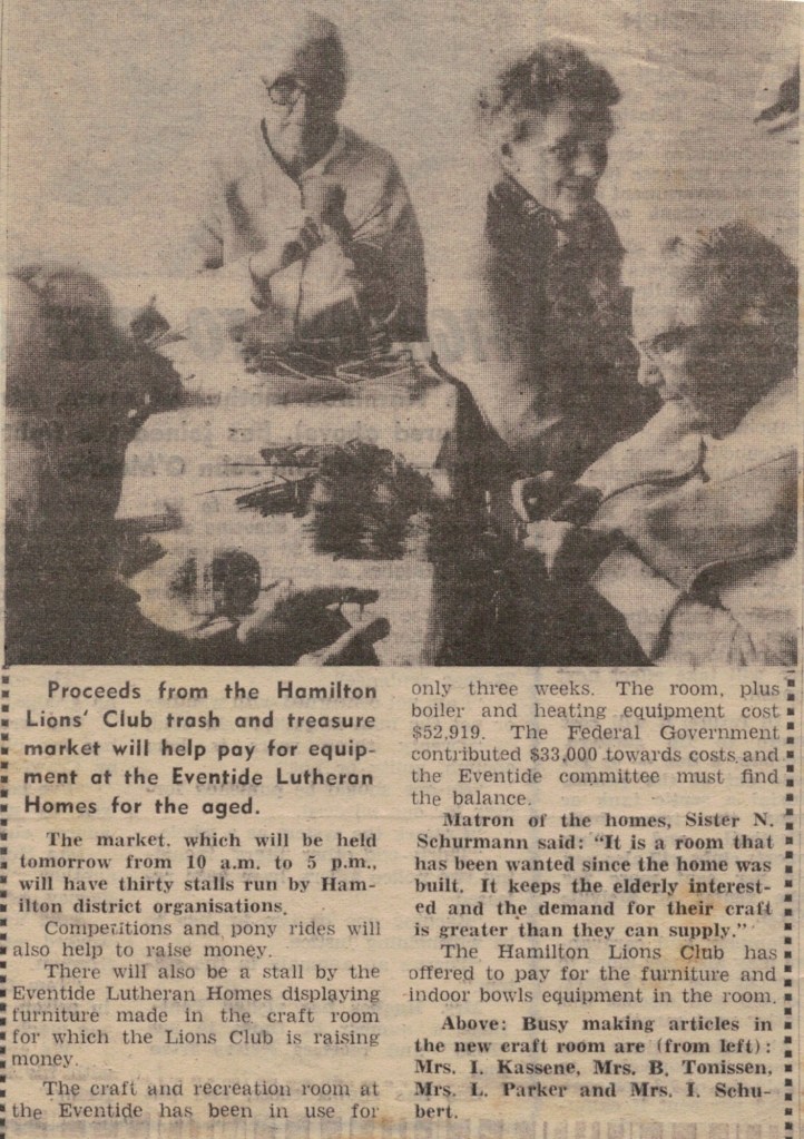 “Lutheran” (Adelaide, SA), 15 July 1974. Winnie Schubert (Adler) standing at front with a carrying bag.