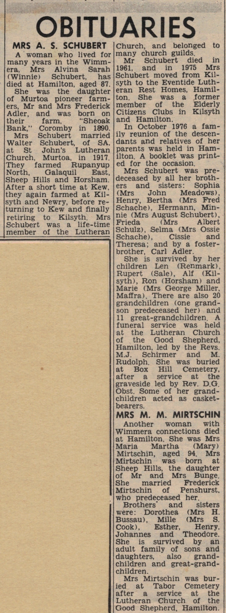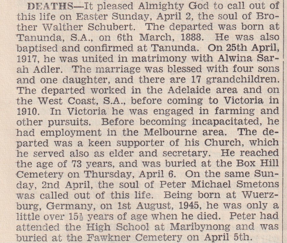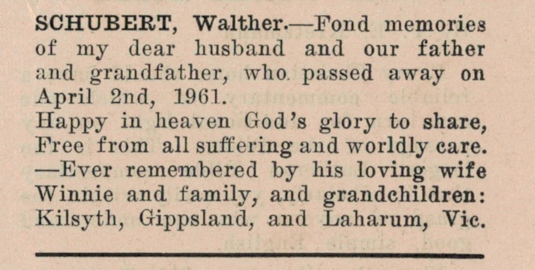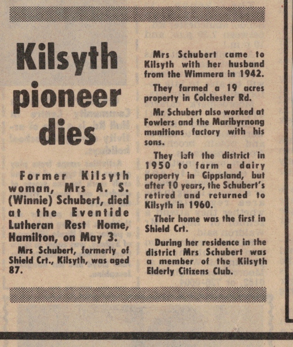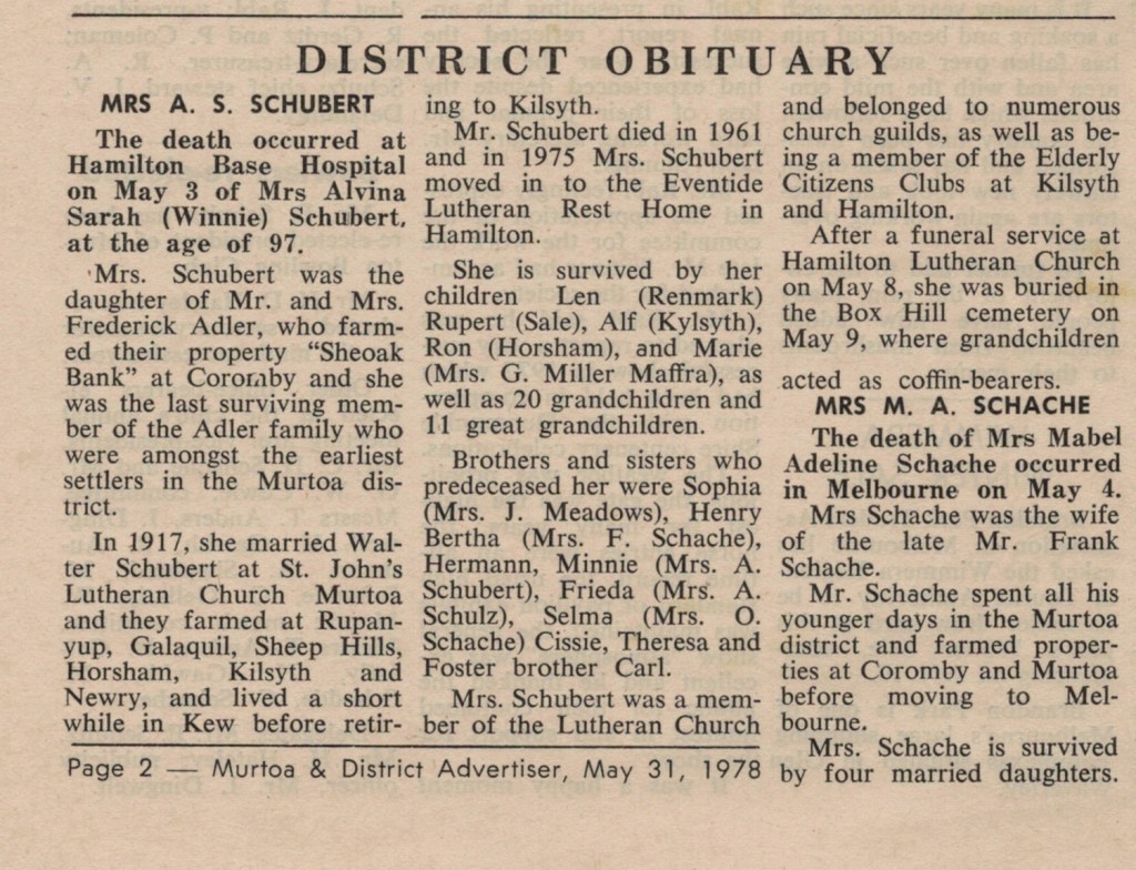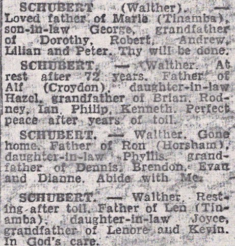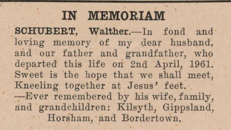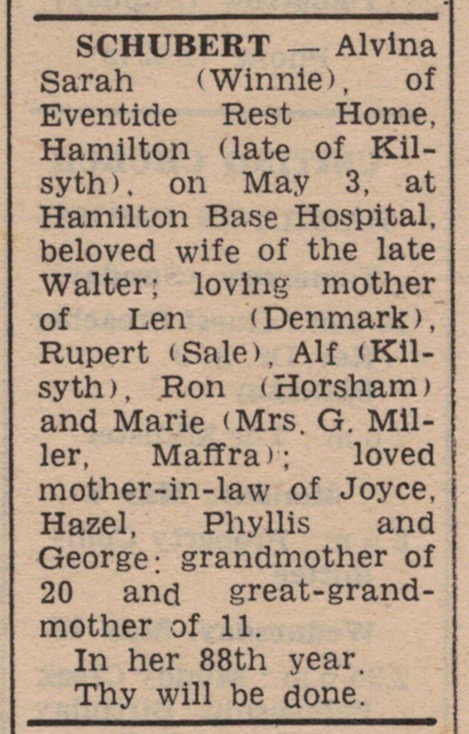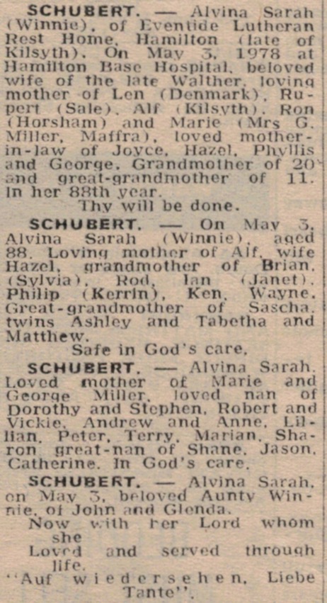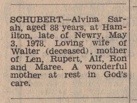 “Mail-Times” (Horsham, Vic.), Friday 5 May 1978, page 13 (“Deaths”).