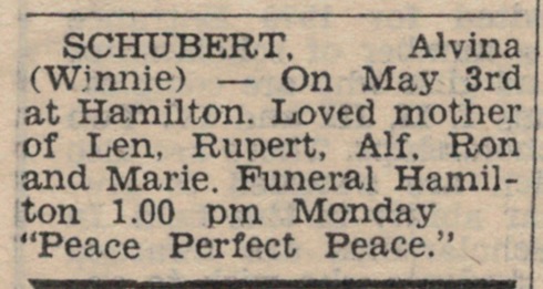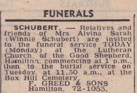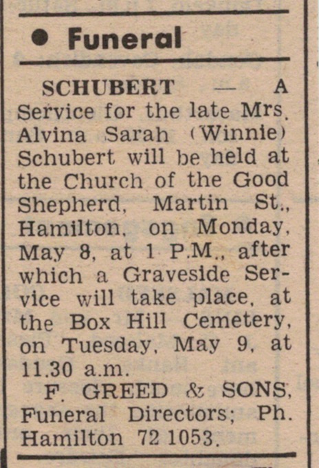 “Hamilton Spectator” (Vic.), Saturday 6 May 1978, page 22 (“Deaths”).