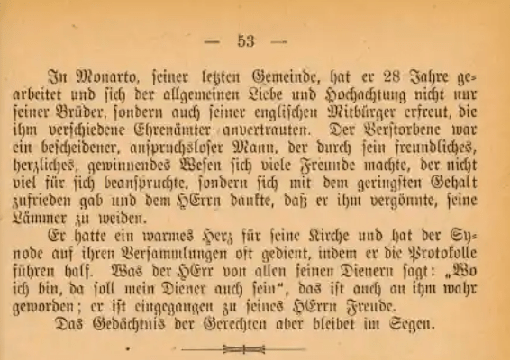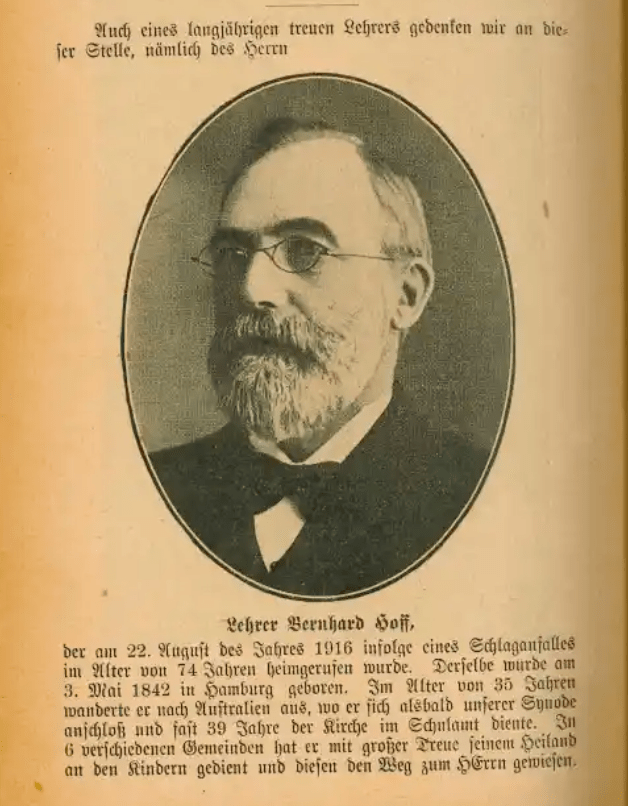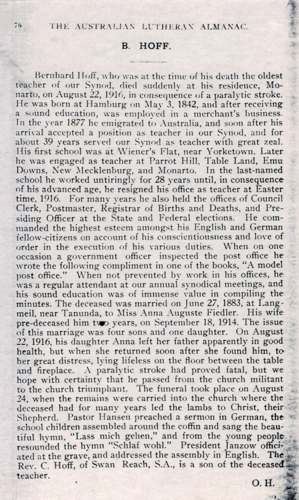 “Australian Lutheran Almanac” (1920), extract from the article “A Short Sketch of the Life of the Deceased Servants of the Church”, page 76.