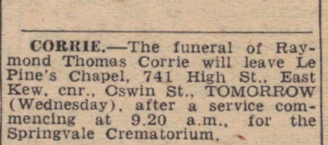 “Sun” (Melbourne, Vic., Tuesday 5 September 1967, page 50 (“Funerals”).