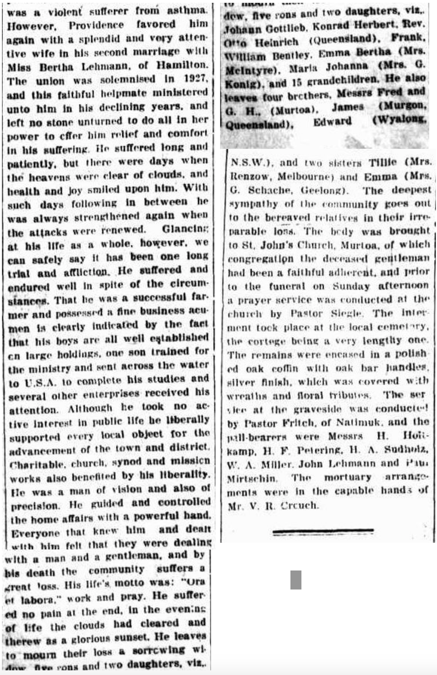 “Lutheran Herald” (Tanunda, SA), 31 July 1922, page 256.
