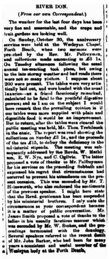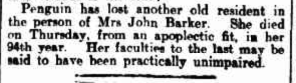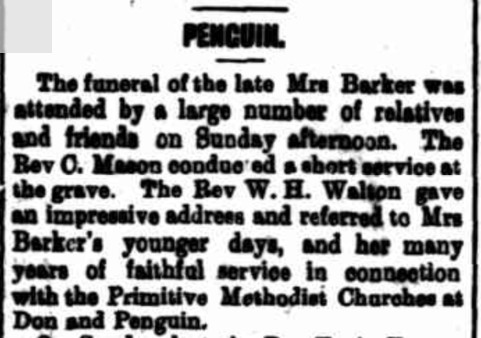 “Launceston Examiner” (Tas.), Thursday 10 November 1870, page 3 [Trove].“North Western Advocate and the Emu Bay Times” (Tas.), Friday 21 June 1901, page 2 (extract from article “Penguin”) [Trove].