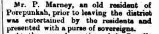 “Myrtleford Mail and Whorouly Witness” (Vic.), Thursday 12 February 1914, page 1 (extract from article: “Porpunkah”).