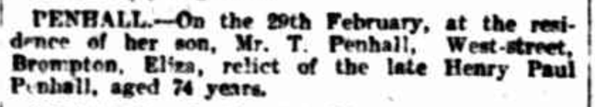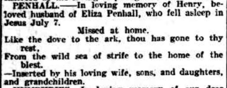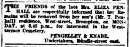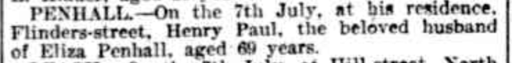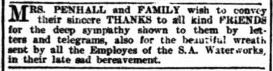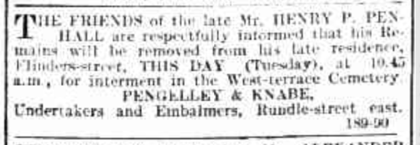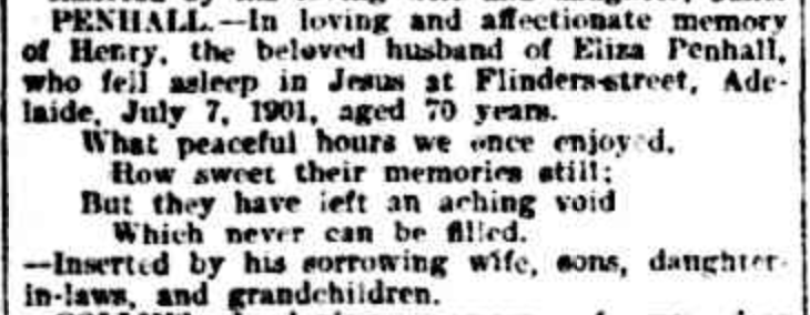 “Advertiser” (Adelaide, SA), Monday 8 July 1901, page 2 (“Funeral Notices”) [Trove]; also published in the same paper, Tuesday 9 July 1901, page 2.