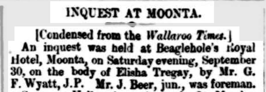 “Wallaroo Times and Mining Journal” (Port Wallaroo, SA), Wednesday 4 October 1871, page 2 (extract) [Trove]; also published in the same paper, Saturday 7 October 1871, page 1.