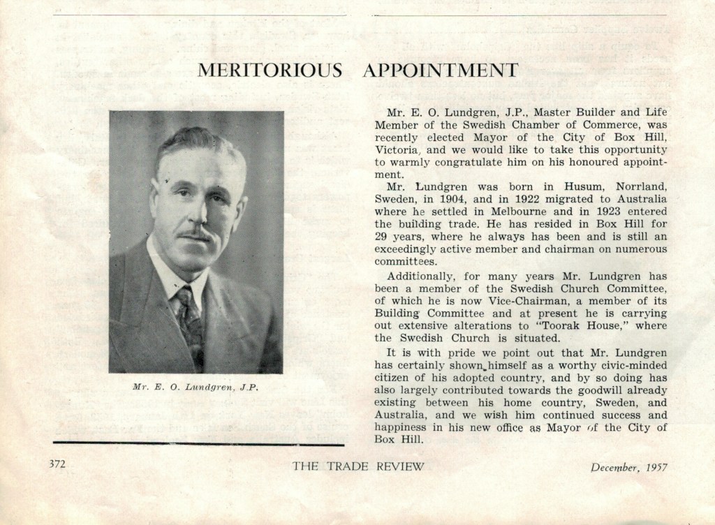 Published References (3. LUNDGREN) “The Trade Review [of the Swedish Chamber of Commerce for Australia, New Zealand and South Sea Islands]” (Sydney, Australia), Vol. 44, No. 12, December 1957, page 372.