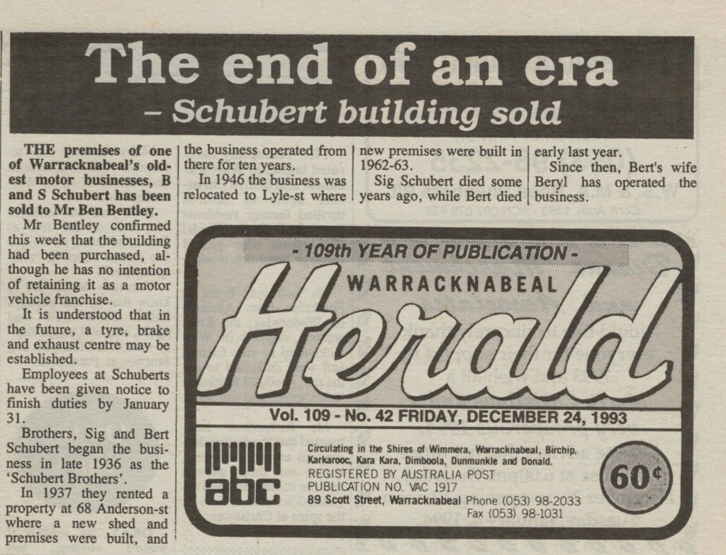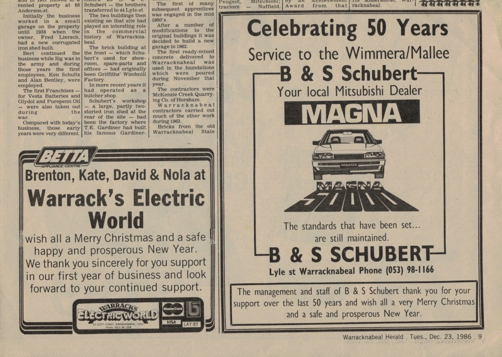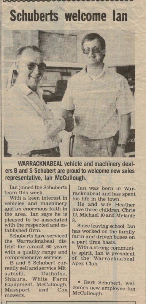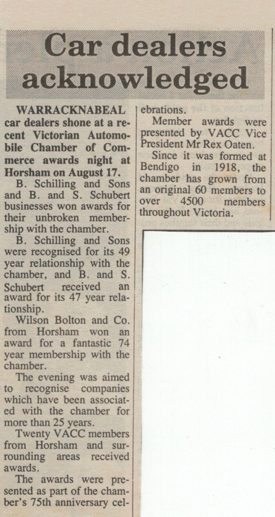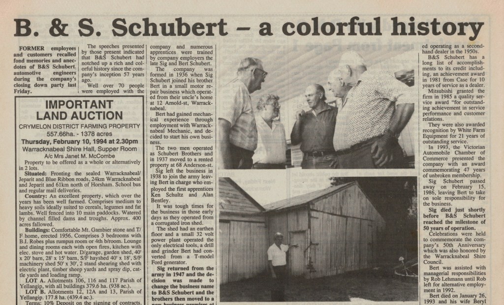 Published References (B&SS) “Warracknabeal Herald” (Vic.), Thursday 3 April 1958, page 6. “Warracknabeal Herald” (Vic.), Friday 18 January 1963, page 3. “Warracknabeal Herald” (Vic.), Tuesday 12 September 1967, page 10. “Warracknabeal Herald” (Vic.), Centenary Edition, Friday 2 August 1985, page 24. “Warracknabeal Herald” (Vic.), Tuesday, February 18, 1986, page 1. “Warracknabeal Herald” (Vic.), Tuesday 23 December 1986, page 9 [JAS]. “Warracknabeal Herald” (Vic.),Friday 10 June 1988, page 8. “Warracknabeal Herald” (Vic.), Friday 19 May 1989, page 9. “Warracknabeal Herald” (Vic.), Friday 16 March 1990, page 5. “Warracknabeal Herald” (Vic.), Friday 23 March 1990, page 2. “Warracknabeal Herald” (Vic.), Friday 8 June 1990, page 3. “Warracknabeal Herald” (Vic.), Friday 24 August 1990, page 5. “Warracknabeal Herald” (Vic.), Friday 5 October 1990, page 15. “Warracknabeal Herald” (Vic.), Friday 14 June 1991, page 7. “Warracknabeal Herald” (Vic.), Friday 28 June 1991. “Warracknabeal Herald” (Vic.), Tuesday 24 August 1993, page 1. “Warracknabeal Herald” (Vic.), Tuesday 31 August 1993, page 5. “Warracknabeal Herald”, Friday 21 January, 1994, page 2. “Warracknabeal Herald”, Tuesday 1 February 1994, page 4. “Warracknabeal Herald”, Friday 4 February 1994, page 6. “Warracknabeal Herald”, Friday 4 February 1994, page 13.