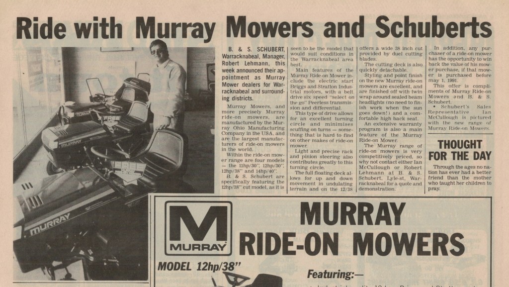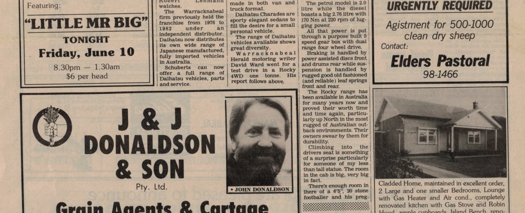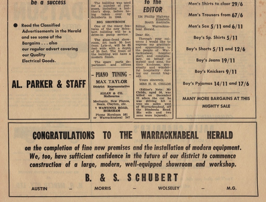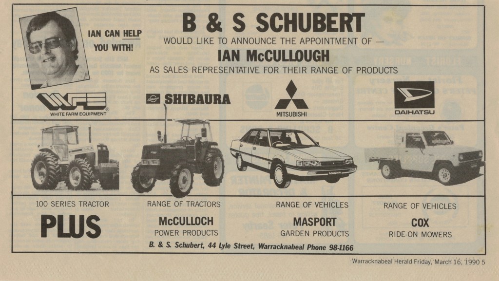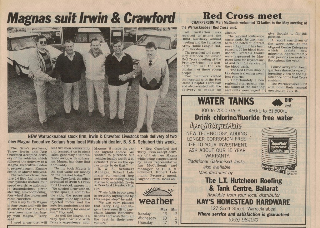 Published References (B&SS) “Warracknabeal Herald” (Vic.), Thursday 3 April 1958, page 6. “Warracknabeal Herald” (Vic.), Friday 18 January 1963, page 3. “Warracknabeal Herald” (Vic.), Tuesday 12 September 1967, page 10. “Warracknabeal Herald” (Vic.), Centenary Edition, Friday 2 August 1985, page 24. “Warracknabeal Herald” (Vic.), Tuesday, February 18, 1986, page 1. “Warracknabeal Herald” (Vic.), Tuesday 23 December 1986, page 9 [JAS]. “Warracknabeal Herald” (Vic.),Friday 10 June 1988, page 8. “Warracknabeal Herald” (Vic.), Friday 19 May 1989, page 9. “Warracknabeal Herald” (Vic.), Friday 16 March 1990, page 5. “Warracknabeal Herald” (Vic.), Friday 23 March 1990, page 2. “Warracknabeal Herald” (Vic.), Friday 8 June 1990, page 3. “Warracknabeal Herald” (Vic.), Friday 24 August 1990, page 5. “Warracknabeal Herald” (Vic.), Friday 5 October 1990, page 15. “Warracknabeal Herald” (Vic.), Friday 14 June 1991, page 7. “Warracknabeal Herald” (Vic.), Friday 28 June 1991. “Warracknabeal Herald” (Vic.), Tuesday 24 August 1993, page 1. “Warracknabeal Herald” (Vic.), Tuesday 31 August 1993, page 5. “Warracknabeal Herald”, Friday 21 January, 1994, page 2. “Warracknabeal Herald”, Tuesday 1 February 1994, page 4. “Warracknabeal Herald”, Friday 4 February 1994, page 6. “Warracknabeal Herald”, Friday 4 February 1994, page 13.