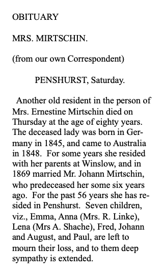 Published References (1.1 ADLER) “Hamilton Spectator” (Vic.), Saturday 7 June 1919 [JAS transcribed SLV]. “Hamilton Spectator” (Vic.), Thursday 12 June 1919 [JAS transcribed SLV]. “Hamilton Spectator” (Vic.), Saturday 19 September 1925 [JAS transcribed SLV]. “Hamilton Spectator” (Vic.), Tuesday 22 September 1925 (note: “Schache” misspelt) [JAS transcribed SLV].