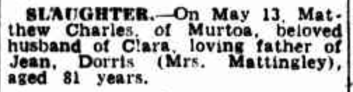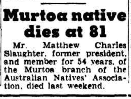 Published References (1.2.1.3 SCHACHE) “Argus” (Melbourne, Vic.), Saturday 14 May 1955, page 20 (“Deaths”) [Trove]. “Argus” (Melbourne, Vic.), Wednesday 18 May 1955, page 5 [Trove].