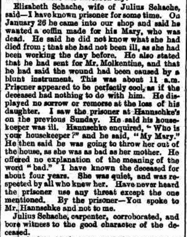 Published References (1.2.1 SCHACHE) “Gawler Standard” (SA), Saturday 10 January 1880 (repeated advertisement) [Trove]. “Christian Colonist” (SA), Friday 30 January 1880 page 7 (repeated advertisement) [Trove]. “Australische Zeitung” (Adelaide, SA), Tuesday 10 February 1880 page 7 (repeated advertisement) [Trove]. “Express and Telegraph” (Adelaide, SA), Monday 31 January 1881 (extract from article “The Murder at Edithburgh”) [Trove]. “Express and Telegraph” (Adelaide, SA), Tuesday 8 February 1881, page 3 (extract from article “The Murder at Edithburgh”)[Trove]. “Horsham Times” (Vic), Tuesday 25 July 1899, page 4 [Trove]. “Hamilton Spectator” (Vic.), Saturday 23 February 1918, page 4 [Trove]. “Age” (Melbourne, Vic.), Monday 25 February 1918, page 1 [Trove]. “Hamilton Spectator” (Vic.), Tuesday 26 February 1918, page 4 [Trove].
