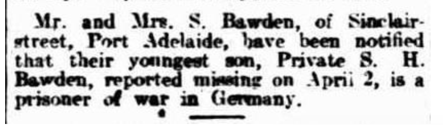 “Advertiser” (Adelaide, SA), Thursday 12 July 1917 page 6 (extract from article “On Active Service”) [Trove].