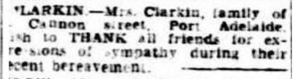 Published References (1.2.4 BAWDEN) “Advertiser” (Adelaide, SA), Monday 14 August 1950, page 18 (“Deaths”) [Trove]. “Advertiser” (Adelaide, SA), Friday 1 September 1950, page 26 (“Return Thanks”) [Trove].