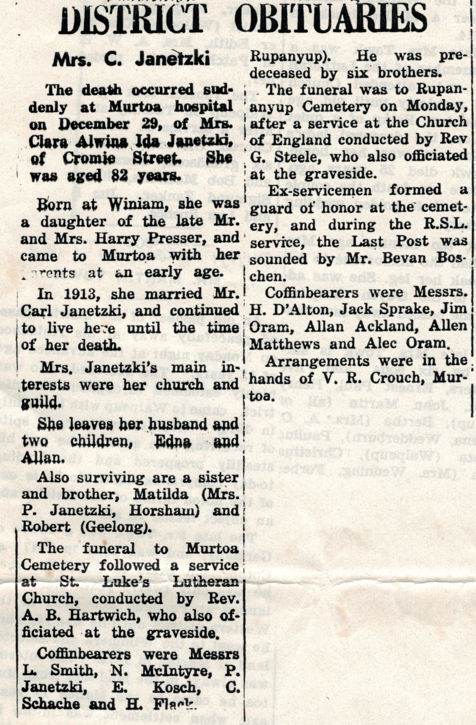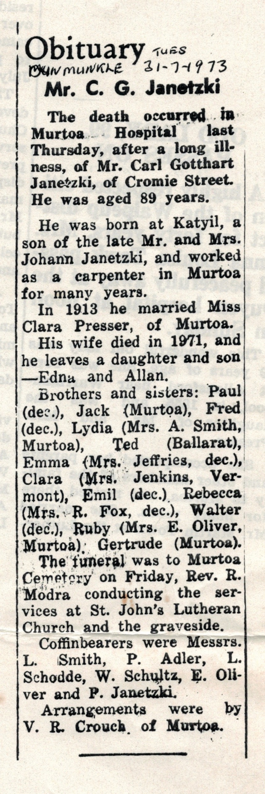 Published References (1.2.7.3 PRESSER) “Dunmunkle Standard” (Murtoa, Vic.), January 1972. “Dunmunkle Standard” (Murtoa, Vic.), Tuesday 31 July 1973.