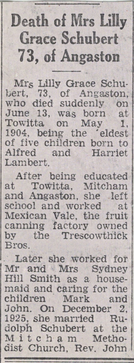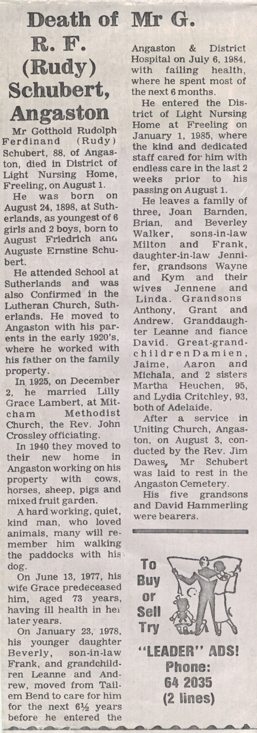 Published References (1.2.5.8 SCHUBERT) “Leader” (Angaston, SA), 1977. “Leader” (Angaston, SA), August 1987.