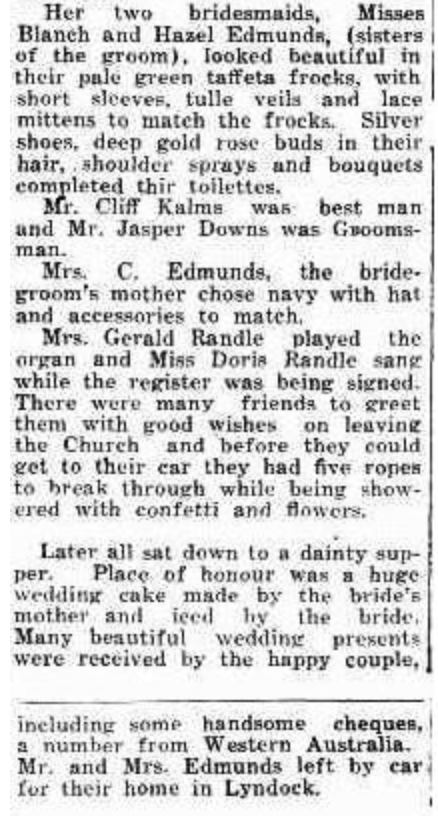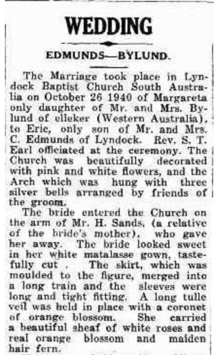 Published References (1.2 BYLUND) “Mount Barker and Denmark Record” (Albany, WA), Thursday 21 November 1940, page 4; also published in “Albany Advertiser” (WA), same date and page [Trove].