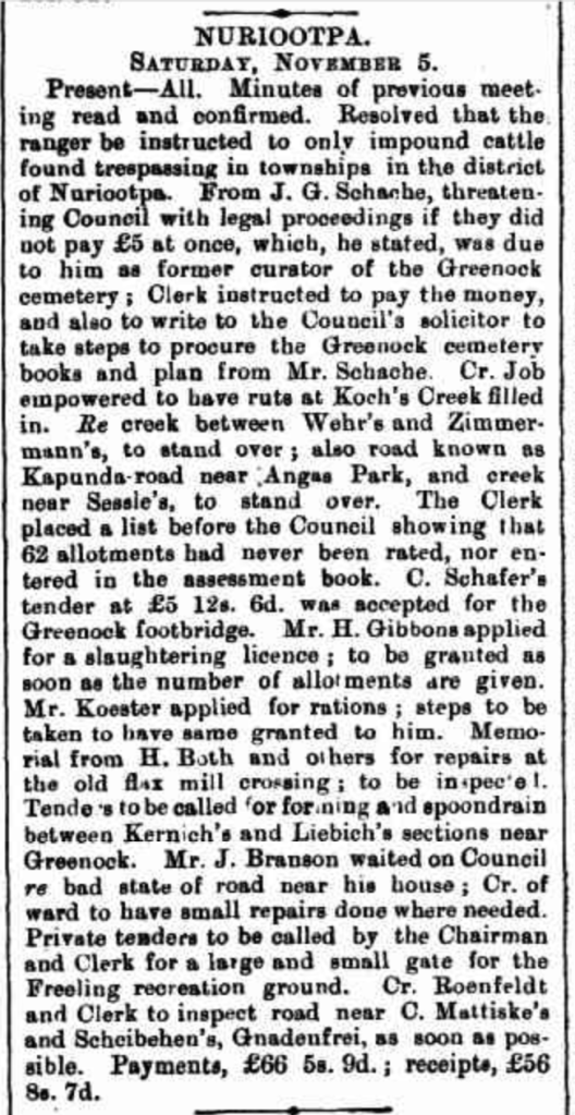 “Kapunda Herald” (SA), Friday 11 November 1887 page 3 (extract from article “District Councils”) [Trove].