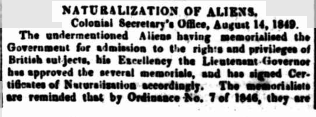 “Adelaide Observer” (SA), Saturday 1 September 1849, page 1 (extract from “Government Gazette Notices”). Also published in “South Australian Register” (Adelaide, SA), same date, page 4 [Trove].
