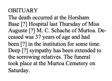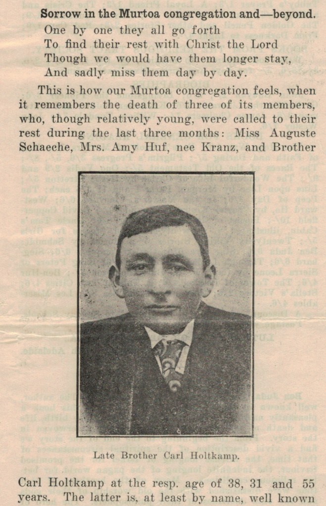 Published References (1.3.1.4 SCHACHE) “Horsham Times” (Vic.), Tuesday 22 September 1931, page 3. “Lutheran Herald” (Tanunda, SA), 14 December, 1931, page 397.