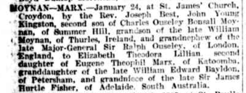 Published References (1.7.4 MARX) “Sydney Morning Herald” (NSW), Saturday 17 February 1906, page 12 (“Marriages”) [Trove].