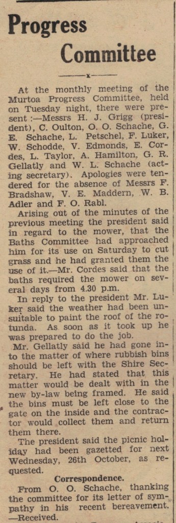 Published References (1.3.6.8 Schache) “Dunmunkle Standard and Murtoa Advertiser” (Vic.), Friday 21 October 1955, page 8 (part of article) [ Tess Hausler (Schache)].