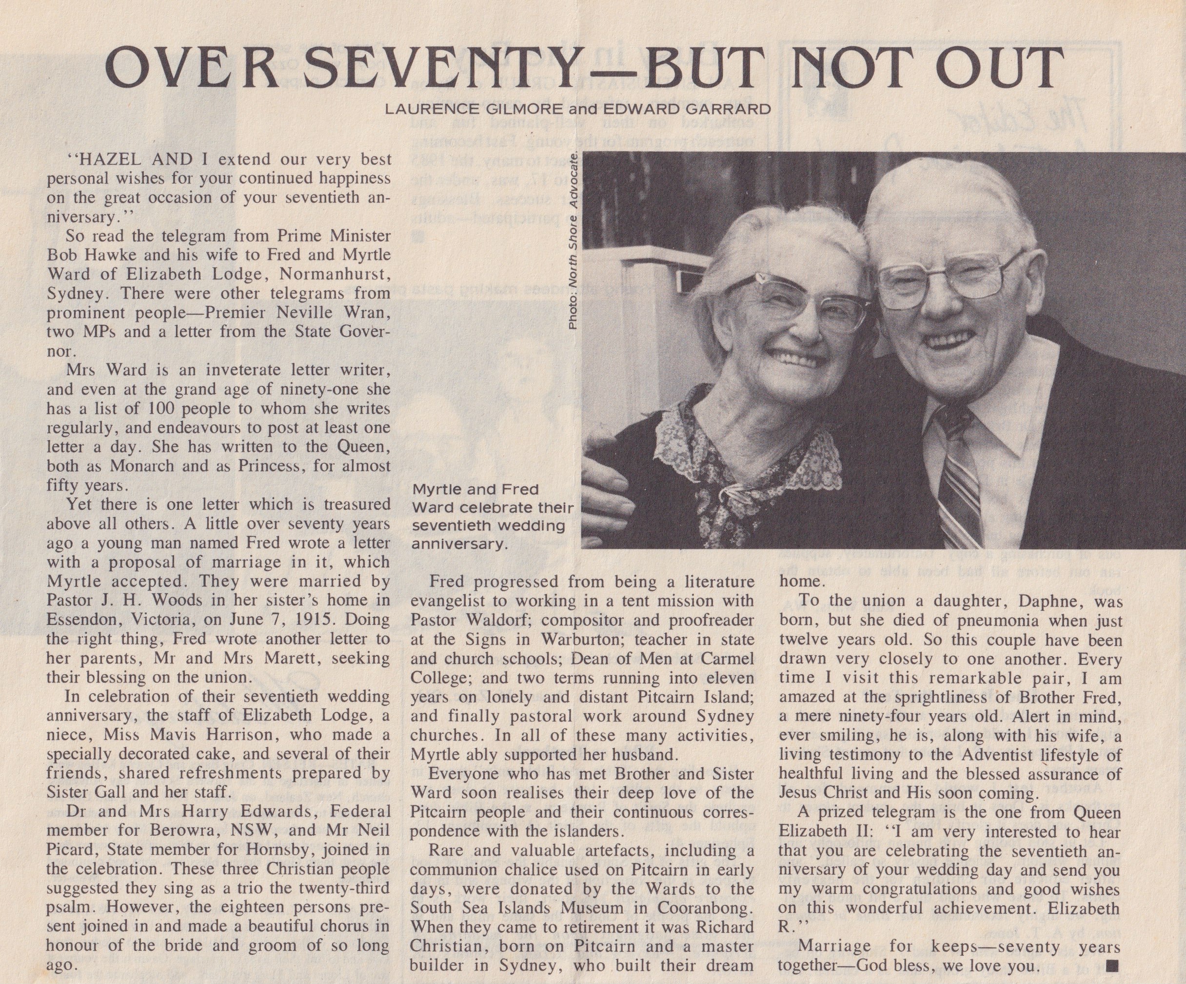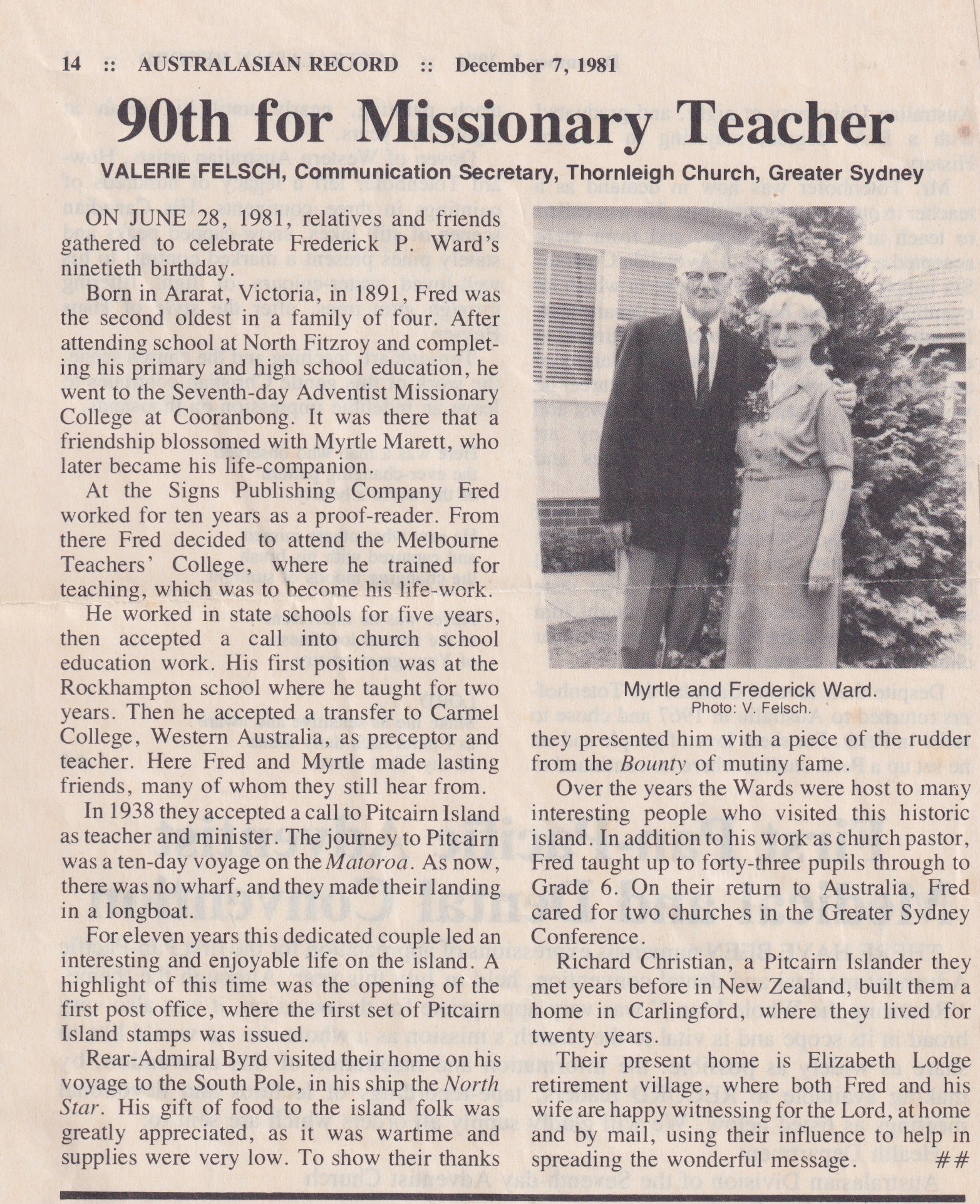 Published References (1.4.2 WARD) “Australasian Record” (Warburton, Vic.), 7 December 1981, page 14. “Australasian Record” (Warburton, Vic.) 1985.