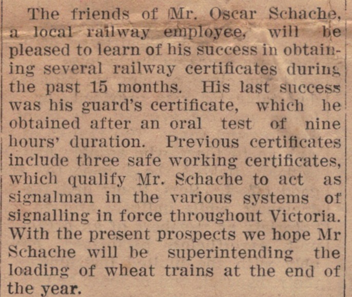 Published References (1.4.4.7 Schaeche) “Warracknabeal Herald” (Vic.), Friday 22 June 1945 [Tess Hausler (Schache)].