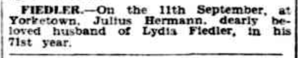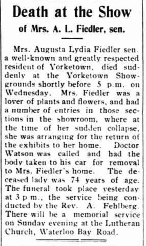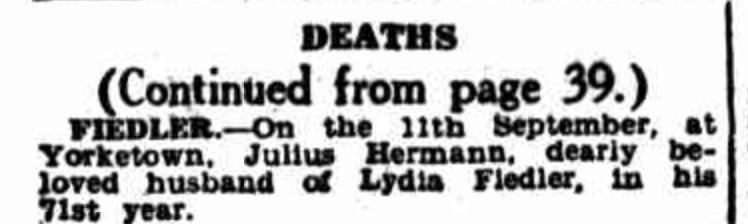 “Chronicle” (Adelaide, SA), Thursday 18 September 1930, page 40. Also published in “Observer” (Adelaide, SA), Thursday 25 September 1930, page 35 (“deaths”).
