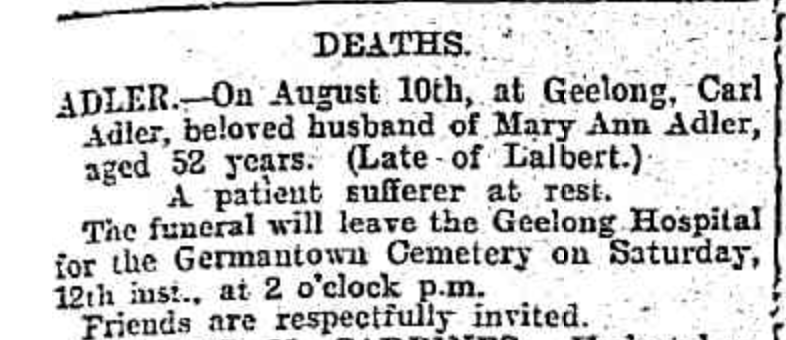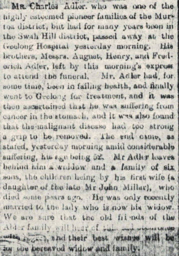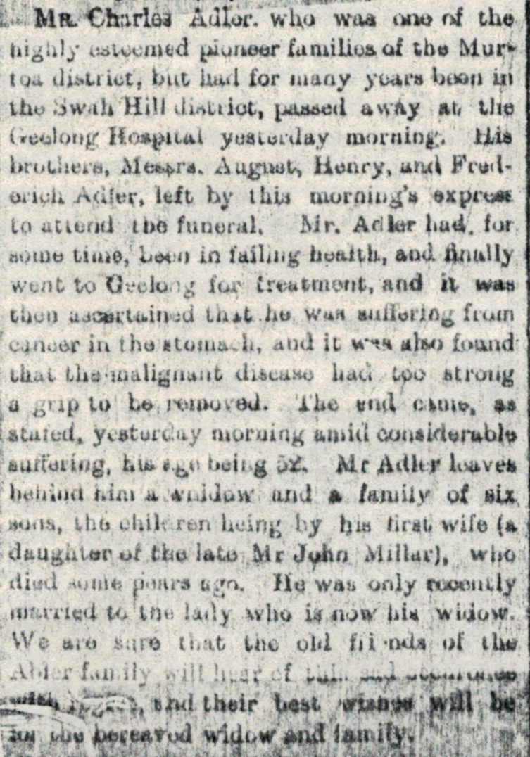 Published References (1.5 ADLER) “Horsham Times” (Vic.), Tuesday 22 June 1897, page 3 (extract from article “Murtoa”). “Geelong Advertiser” (Vic.) Friday 11 August 1905, page 1. “Dunmunkle Standard and Murtoa Advertiser” (Vic.), August 1905 [Eric Uebergang].