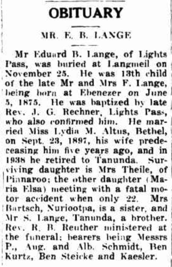 Published References (1.6.13 LANGE) “Leader” (Angaston, SA), Thursday 2 December 1948, page 9 [Trove].