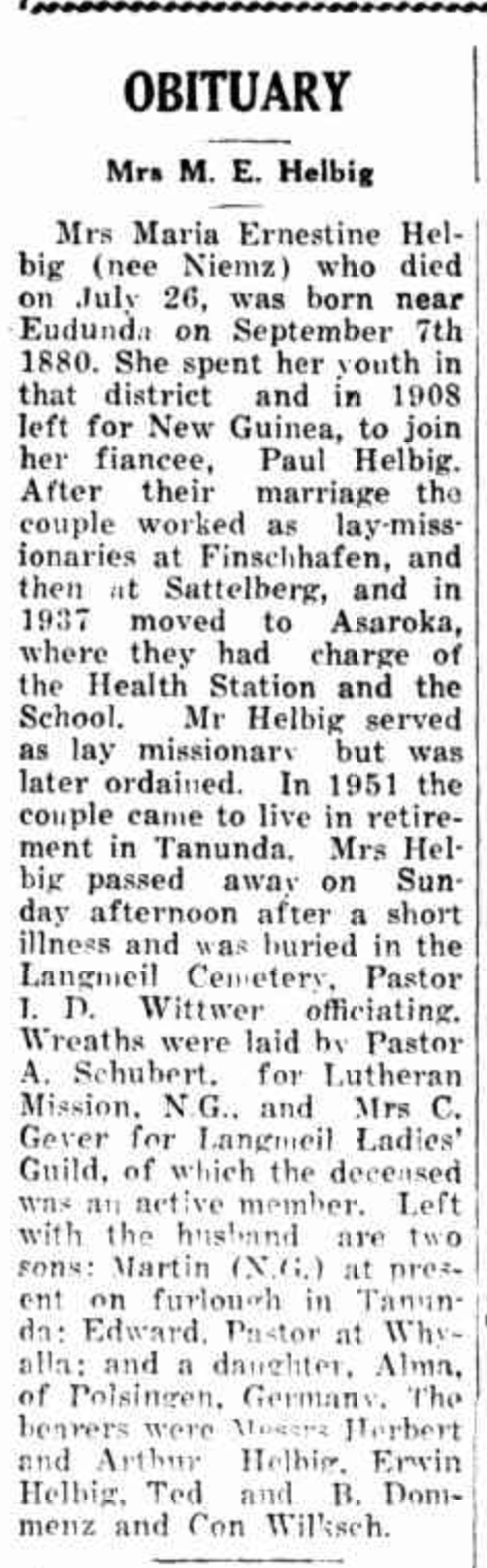 Published References (1.6.2.2 HELBIG) “Leader” (Angaston, SA), Thursday 6 August 1953, page 3 [Trove].