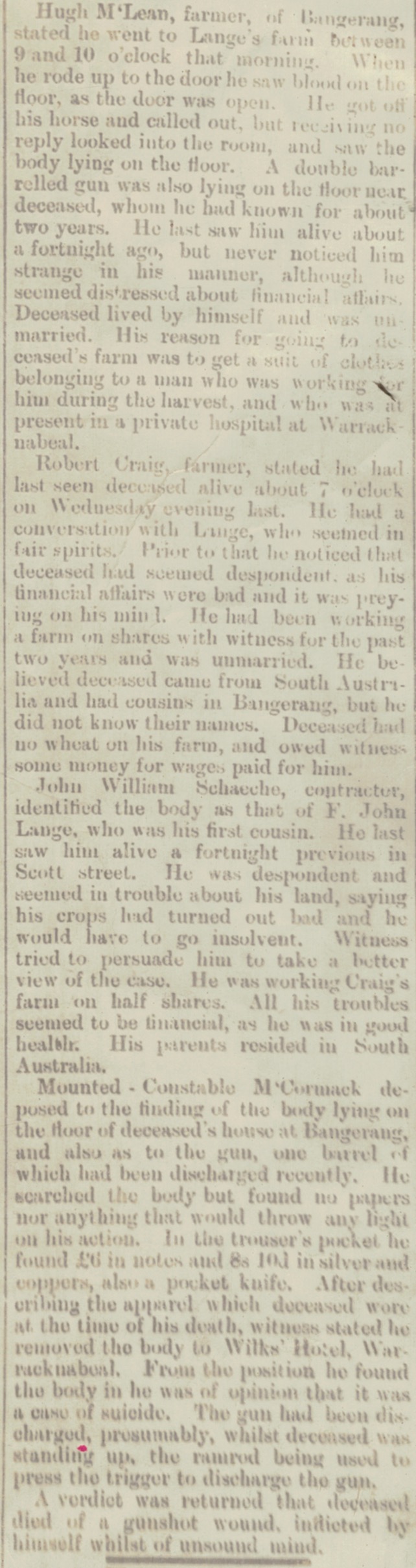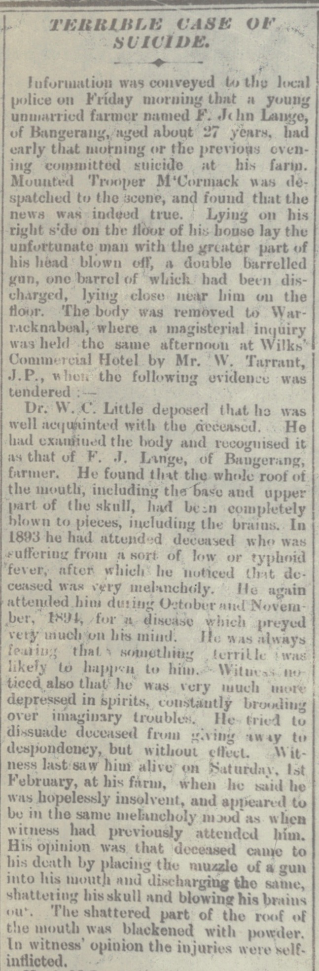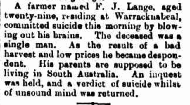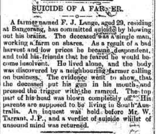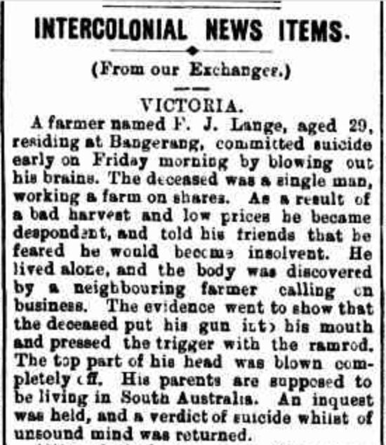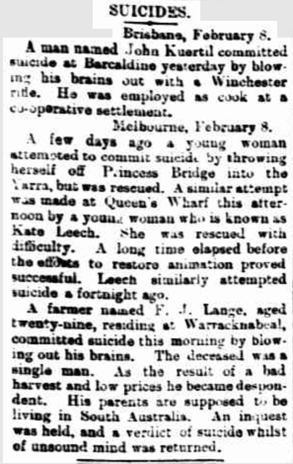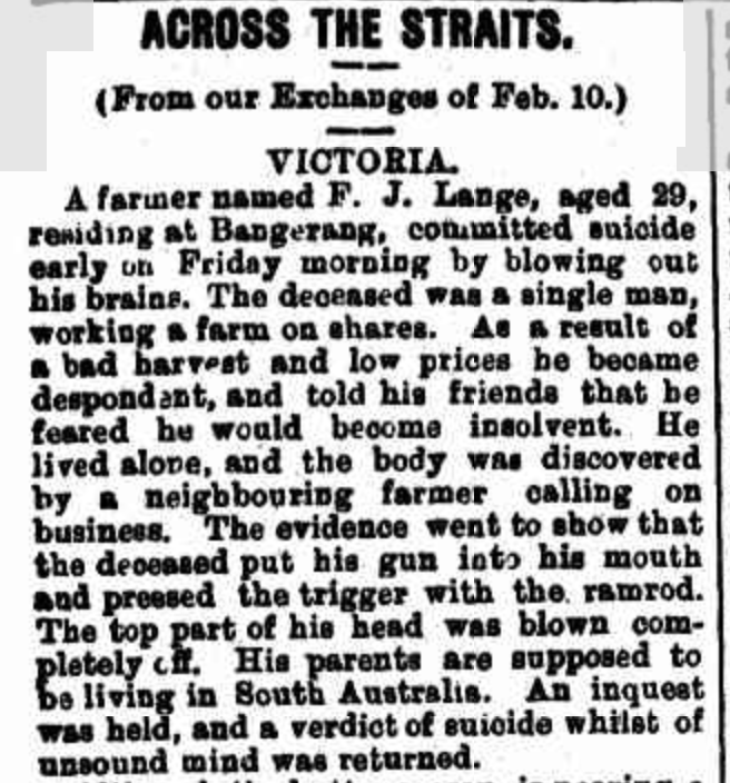 “Adelaide Observer” (SA), Saturday 16 February 1895, page 8 (extract from article “Suicides”); also published in “South Australian Register” (Adelaide, SA), Saturday 9 February 1895, page 6 [Trove].
