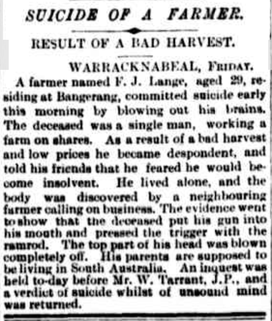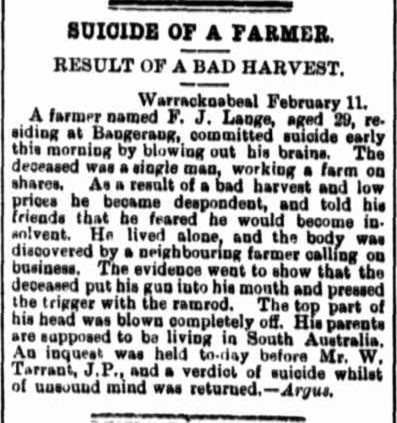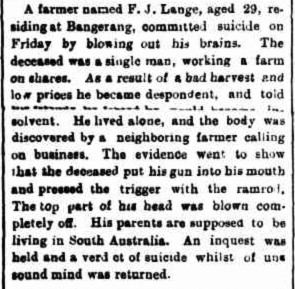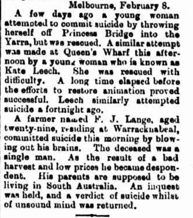“Adelaide Observer” (SA), Saturday 16 February 1895, page 8 (extract from article “Suicides”); also published in “South Australian Register” (Adelaide, SA), Saturday 9 February 1895, page 6 [Trove].