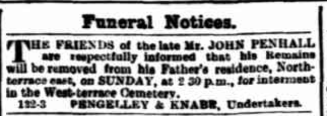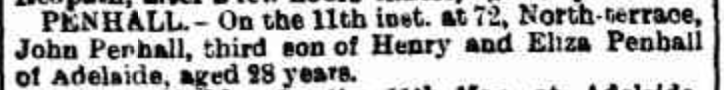 “Express and Telegraph” (Adelaide, SA), Thursday 11 May 1893, page 2 (“Deaths”) [Trove]; also published in the “Advertiser” (Adelaide, SA), Friday 12 May 1893, page 4 and Tuesday 16 May 1893, page 3.