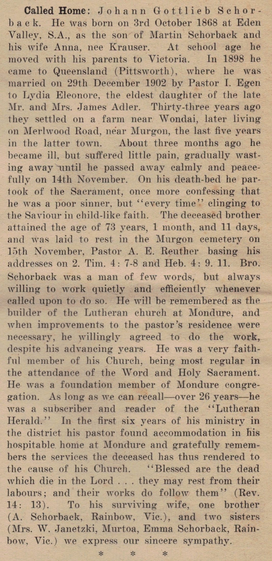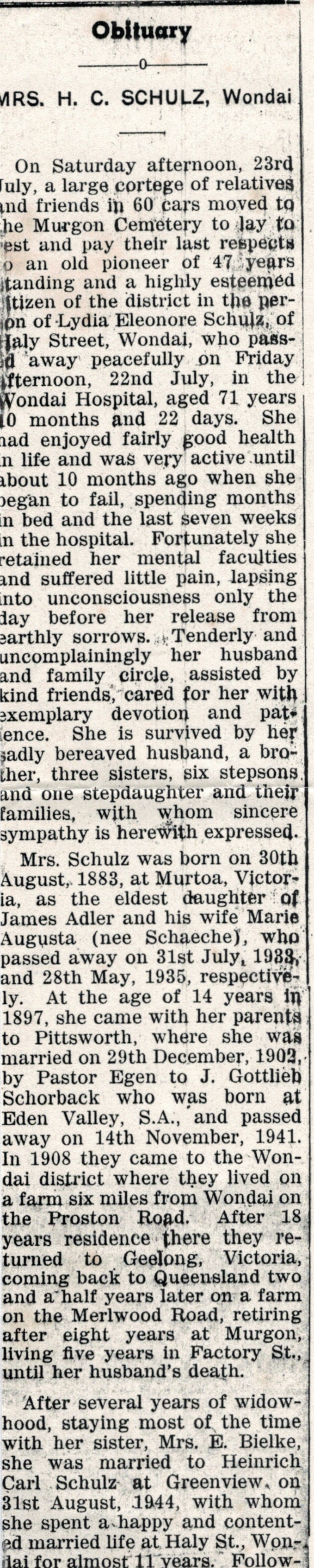 Published References (1.7.1 ADLER) “Lutheran Herald” (Tanunda, SA), 8 December 1941, page 398. “Lutheran Herald” (Tanunda, SA), 7 November 1942, page 368. “Lutheran Herald” (Tanunda, SA), 6 November 1943, page 368. Probably “South Burnett Times” (Kingaroy, Qld), 1955 [Allie Miller (Adler)].