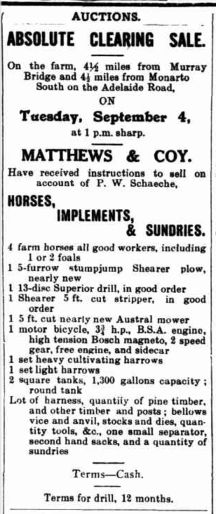 Published References (1.7.11 SCHACHE) “The Mount Barker Courier and Onkaparinga and Gumeracha Advertiser”(SA), Friday 31 August 1917, page 4 [Trove].