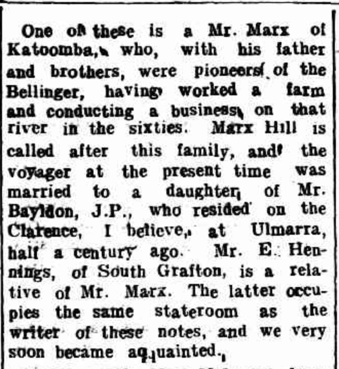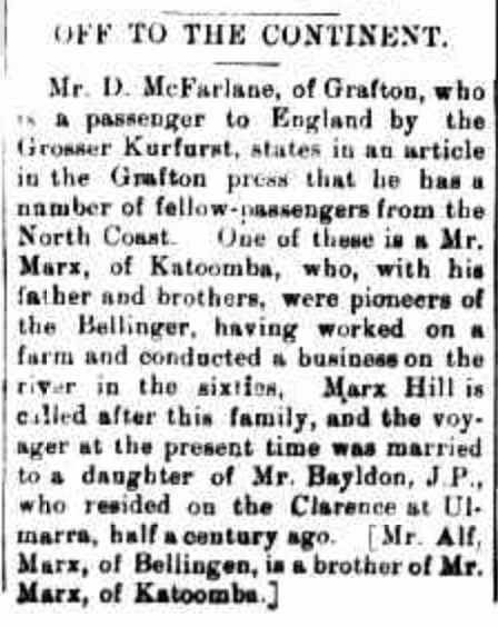 Published References (1.7 BAYLDON) “Sydney Morning Herald” (NSW), Monday 12 October 1896, page 1 [Trove]. “Grafton Argus and Clarence River General Advertiser” (NSW), Monday 20 May 1912, page 4 (extract from article “Grafton to Germany”) [Trove]. “Raleigh Sun” (Bellingen, NSW), Friday 31 May 1912, page 4 [Trove].
