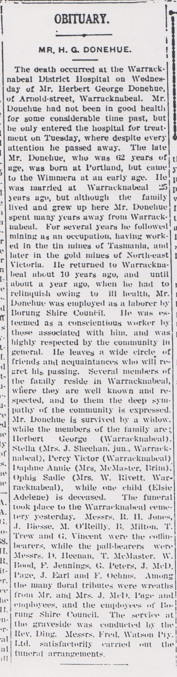 Published References (1.7 BOWN) “Warracknabeal Herald” (Vic.), Friday 9 August 1935 (Kylie Campbell). “Age” (Melbourne, Vic.), Saturday 10 August 1935, page 16 (extract from article) [Trove]. “Warracknabeal Herald” (Vic.), September 1956 (Kylie Campbell).