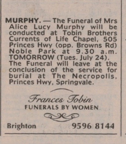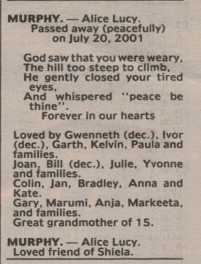Published References (1.8.1.4 BOEHM) “Herald Sun” (Melbourne, Vic.), Monday 23 July 2001 (“Deaths”). “Herald Sun” (Melbourne, Vic.), Monday 23 July 2001 (“Funerals”).